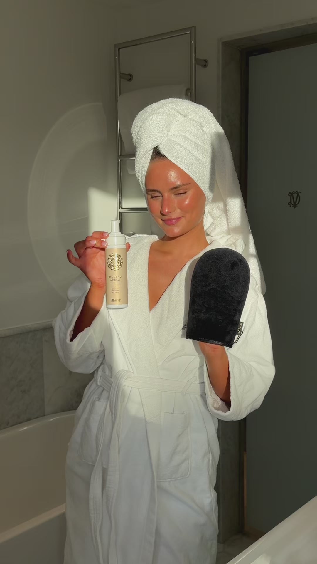 Apply the mousse to clean, dry skin using a Bronza Application Mitt. Work the product in using circular motions for an even result.